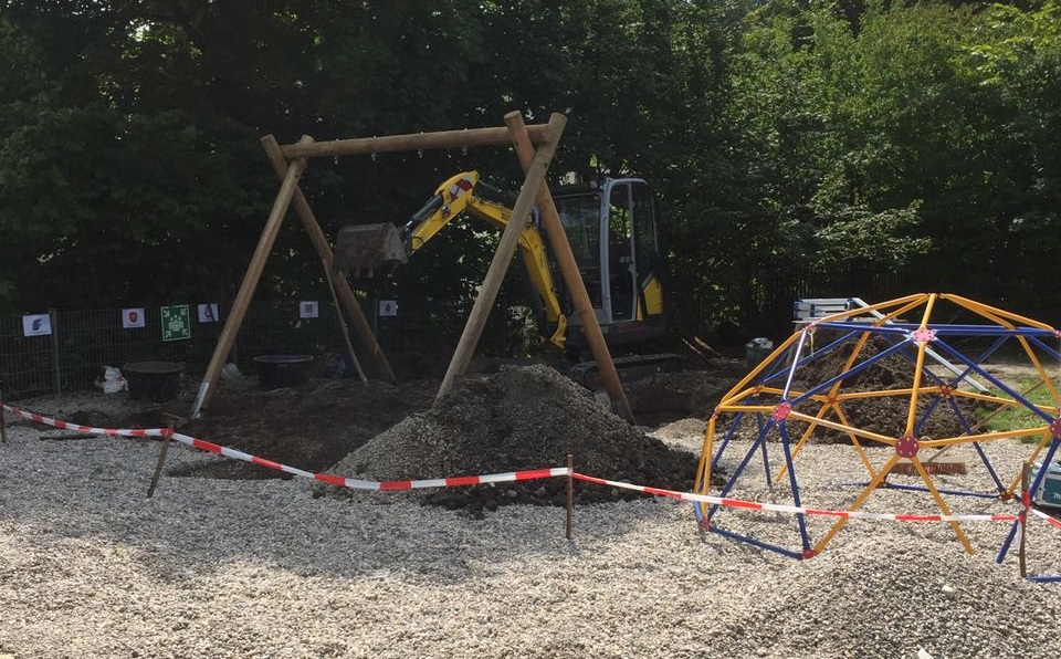 Spielplatz gestalten / Schaukel aufbauen